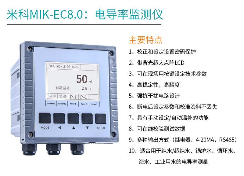 米科MIK-EC8.0在線電導(dǎo)率測(cè)試儀
