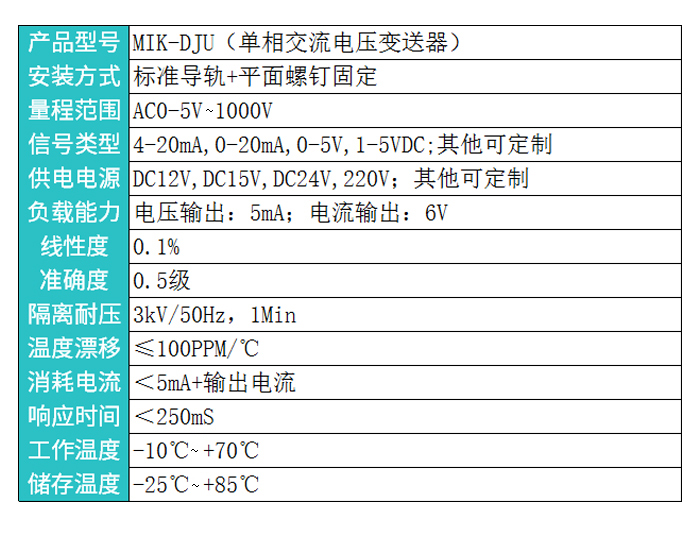 適用場(chǎng)合:MIK-DJU交流電壓變送器可用于測(cè)量交流電壓,特別使用于工頻50Hz正弦波交流電壓, 廣泛用于測(cè)量交流電壓的場(chǎng)所。