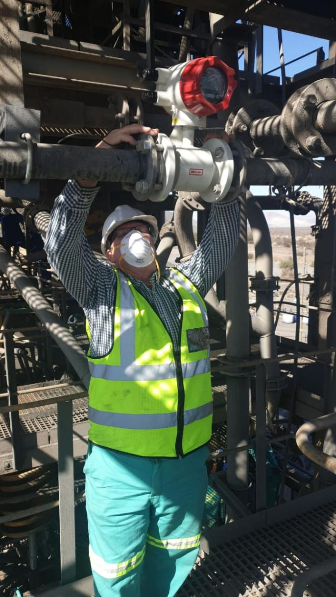 位于南美洲秘魯利馬的一家當(dāng)?shù)刂牟傻V企業(yè),圖中的工程師正在新建的洗礦廠內(nèi)安裝米科的電磁流量計。該項目主要保證清洗礦砂過程中的水量的計量,而洗礦過程使用水量控制一直都是工廠節(jié)能減排的重要抓手。