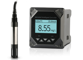 采用極譜式電極,陽電極為Ag/AgCl、陰電極為鉑金(Pt)組成,兩者之間充滿特殊成份的是電解液。由硅橡膠滲透膜包裹于電極四周。測量時,電極間加上675mV的極化電壓,氧滲透過隔膜在陰極消耗,同時等量的氧在陽極產(chǎn)生,這個動態(tài)過程進(jìn)行到兩邊的氧分壓相同時達(dá)到平衡.此時兩電極間的電流與氧分壓成正比,二次表檢測到此電流,再經(jīng)過一系列變換,得到氧濃度和氧含量.同時,NTC(負(fù)溫度系數(shù)熱敏電阻)檢測被測量液的溫度,二次表采樣后進(jìn)行溫度補(bǔ)償,將氧濃度或氧含量折算成25℃時的值。