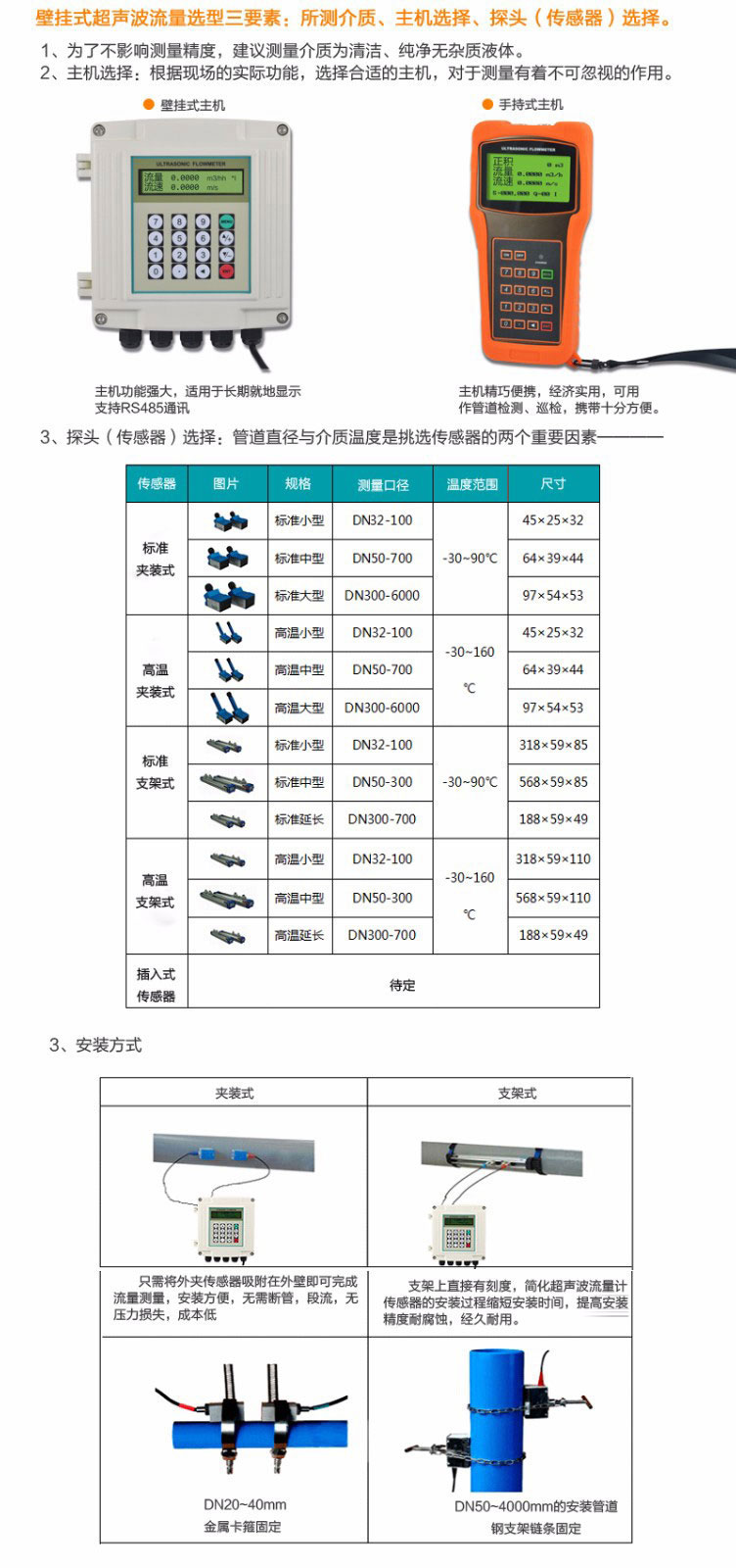 適用場合:超聲波熱量表是通過超聲波的方法測量流量及顯示水流經熱交換系統(tǒng)所釋放或吸收熱能量的儀表。它通過兩種傳感器測得的物理量——熱載體的流量和進出口的溫度,再經過密度和熱焓值的補償及積分計算,才能得到熱量值。