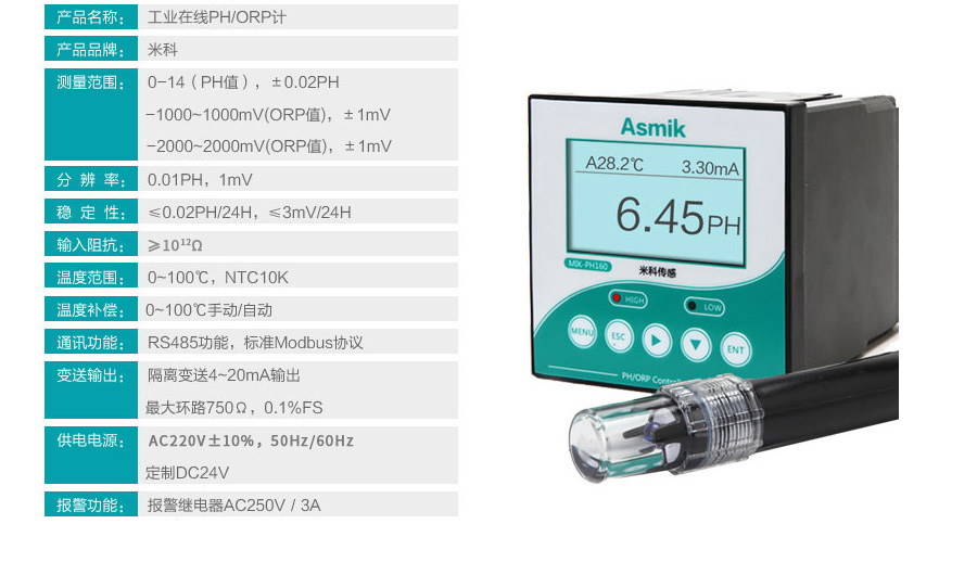 米科MIK-pH160在線(xiàn)pH/ORP檢測(cè)儀