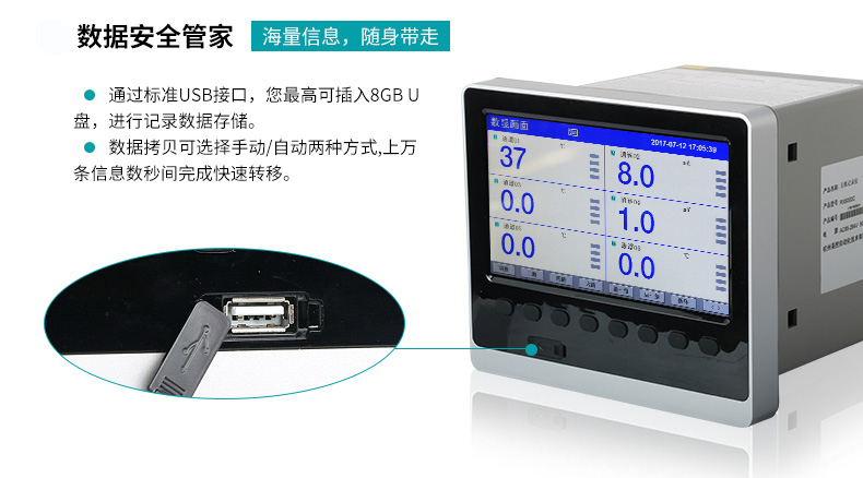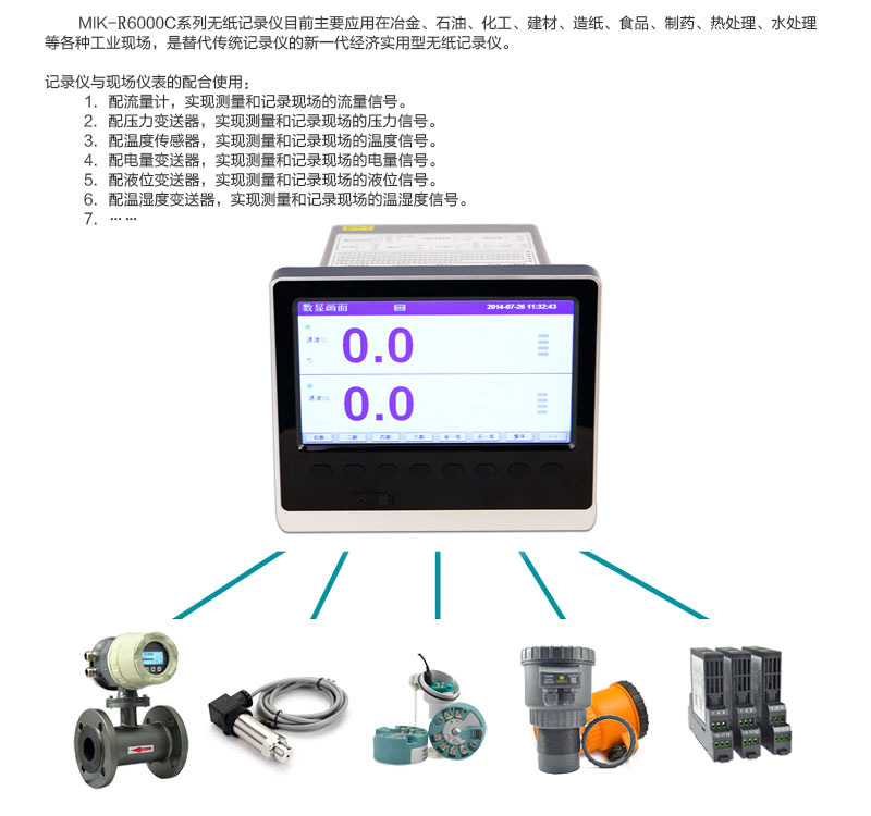 適用場(chǎng)合:米科MIK-R6000F新款無(wú)紙記錄儀1~36通道,集數(shù)據(jù)的測(cè)量、顯示、處理、運(yùn)算、報(bào)警、記錄報(bào)表等多種功能于一身??刹杉绷麟妷?、電流、熱電偶、熱電阻等常規(guī)數(shù)值的的采集與記錄。