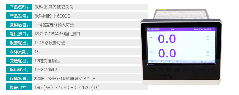 米科MIK-R6000F新款無(wú)紙記錄儀